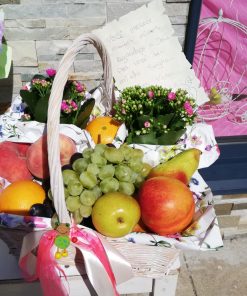 Emocione e surpreenda enviando este adorável presente com sua mensagem especial! Esta cesta é composta com 8 a 10 frutas de pelo menos 4 tipos, tais como maçã, uva, pera, laranja, pêssego, tangerina, etc. A imagem apresentada é meramente ilustrativa, as frutas e embalagens são sujeitas à substituição por produtos semelhantes e de preço equivalente, conforme disponibilidade na cidade de entrega. Disponível na maioria das cidades em Portugal, com entregas até no mesmo dia!